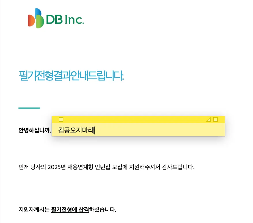 DB Inc 2025년 하반기 공채에 자기소개서는 그대로 제출하고 프로젝트 경험만 다듬어서 제출했는데 서류 탈락을 했다 . . !
